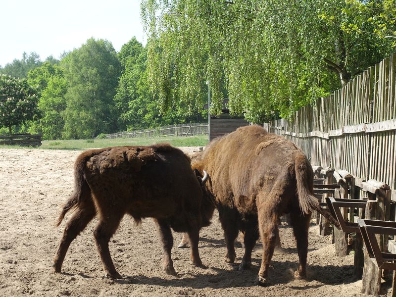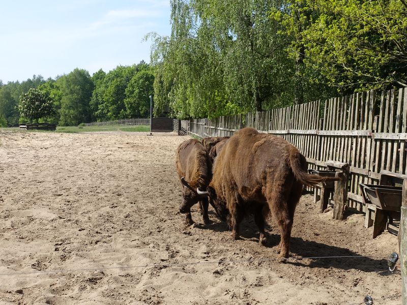 Während der Wartezeit haben die Wisente etwas Langeweile gehabt und Schaukämpfe gezeigt.