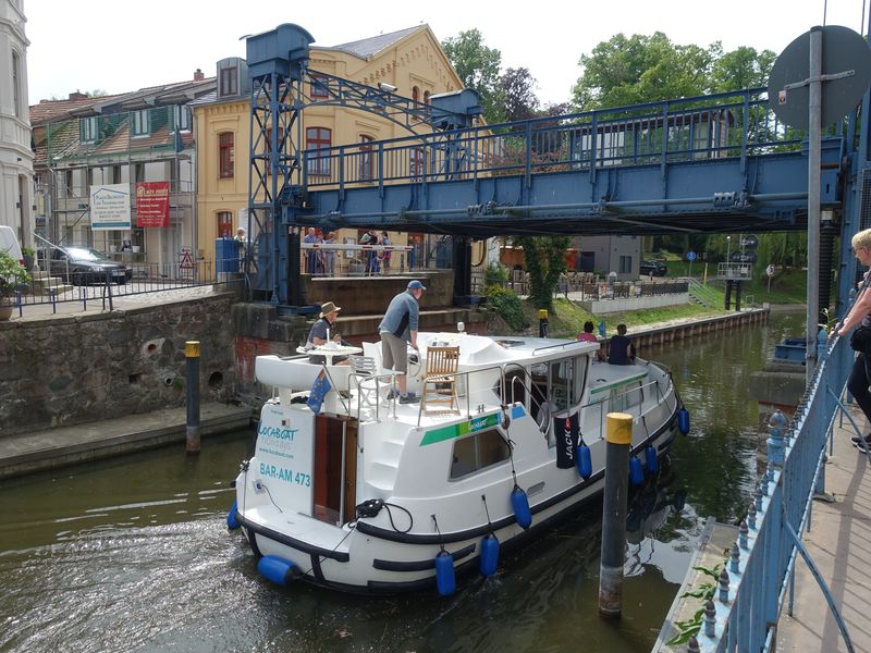 Das ist ein bekanntes Fotomotiv in Plau am See – die alte Hubbrücke – sie ist über 100 Jahre alt.