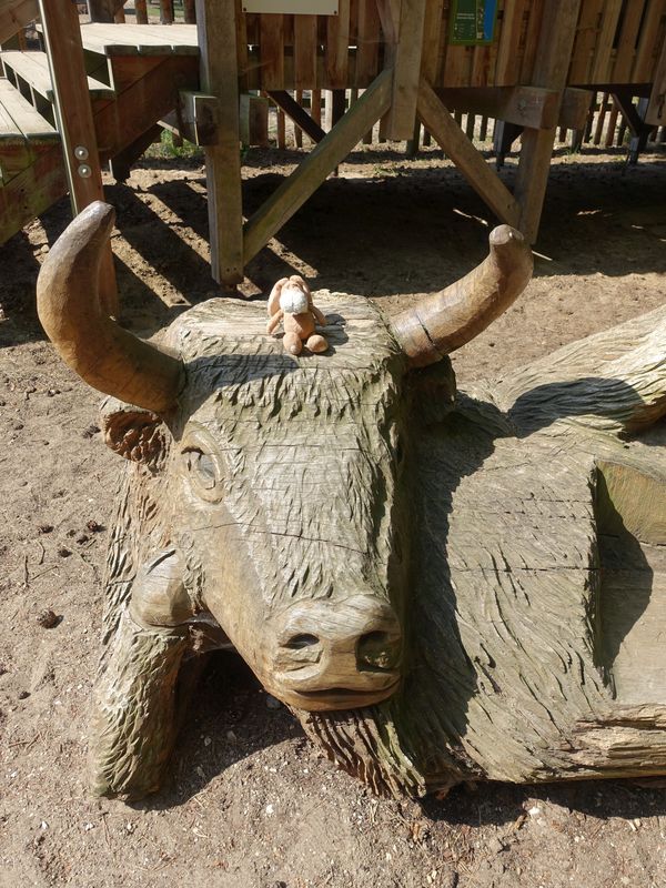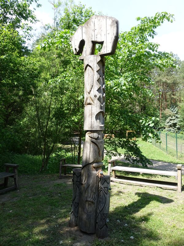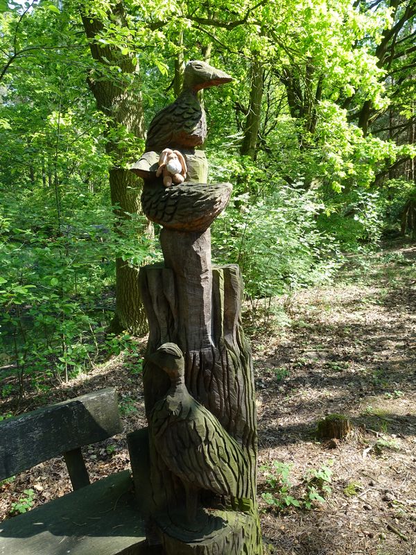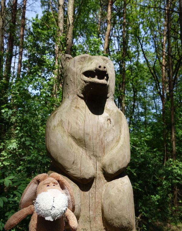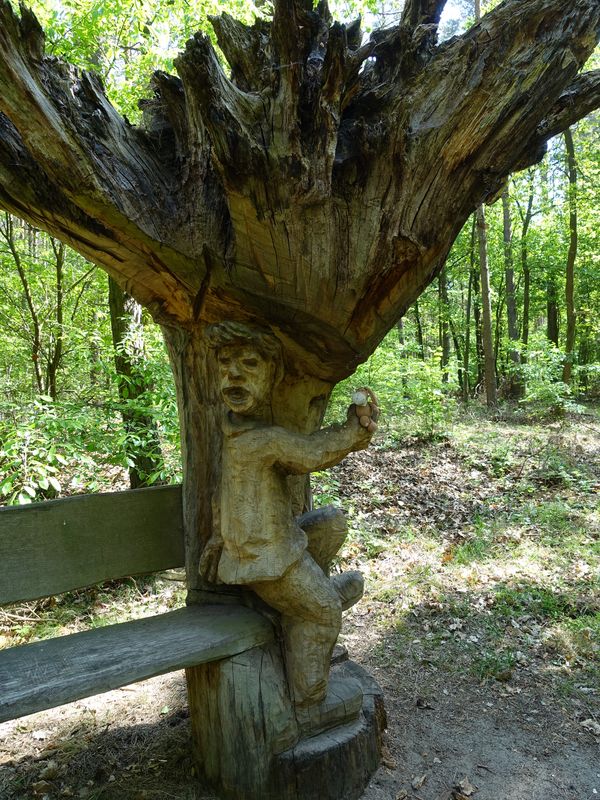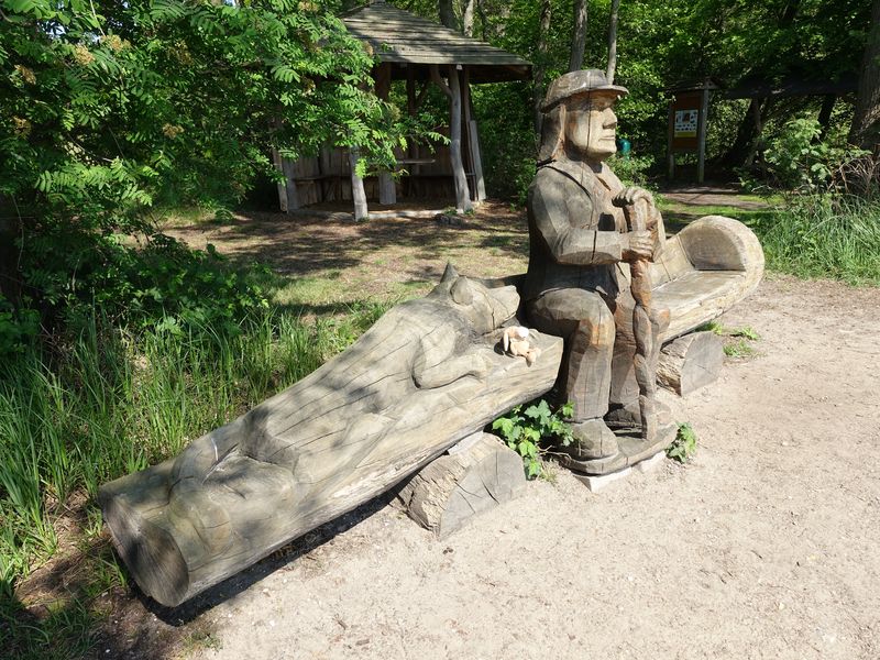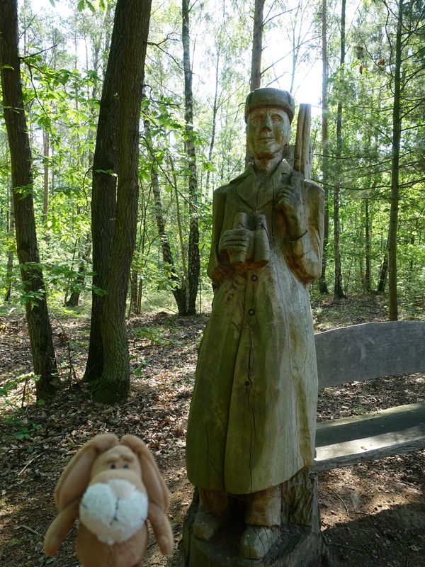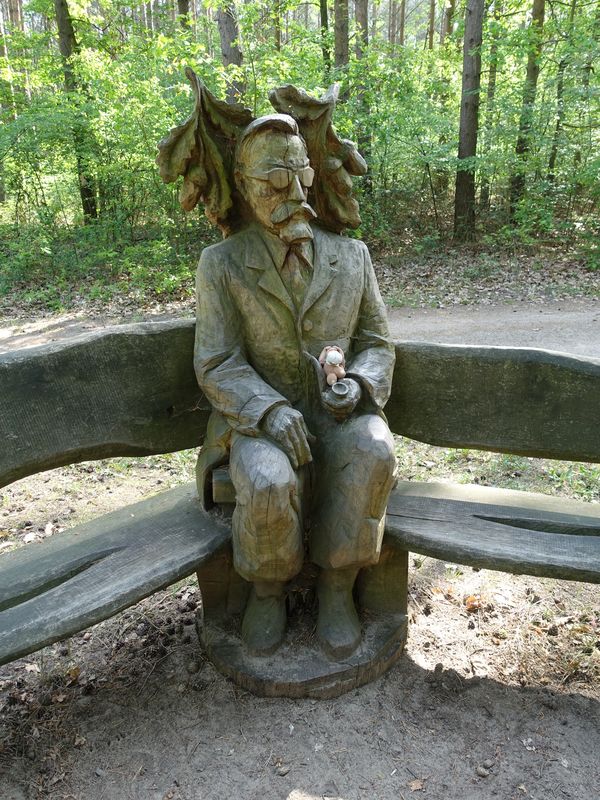 Das ist wohl einer der Gründer hier. Überall im Park gibt es schöne Holzskulpturen.