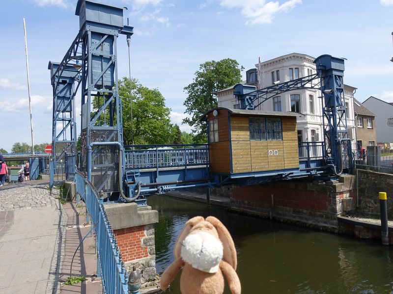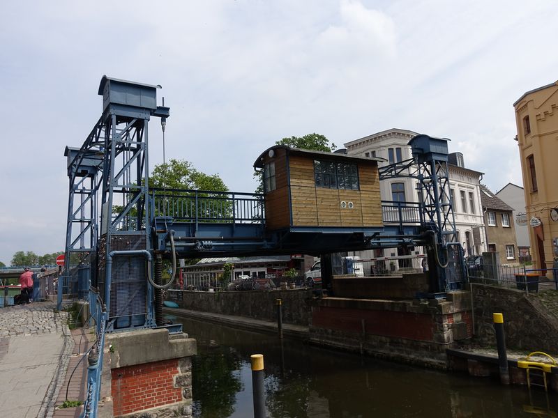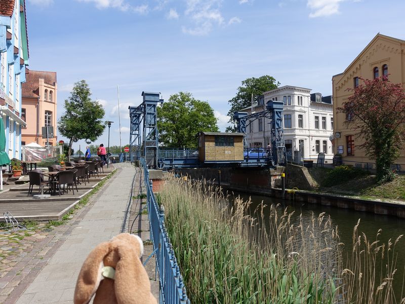 Das ist ein bekanntes Fotomotiv in Plau am See – die alte Hubbrücke – sie ist über 100 Jahre alt.