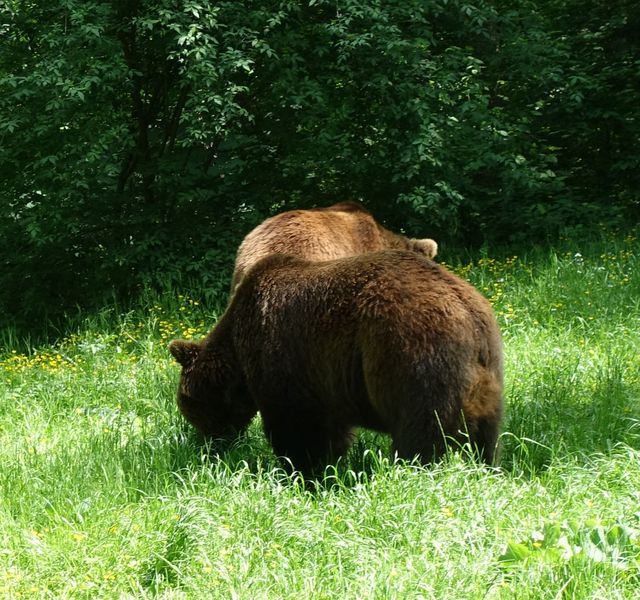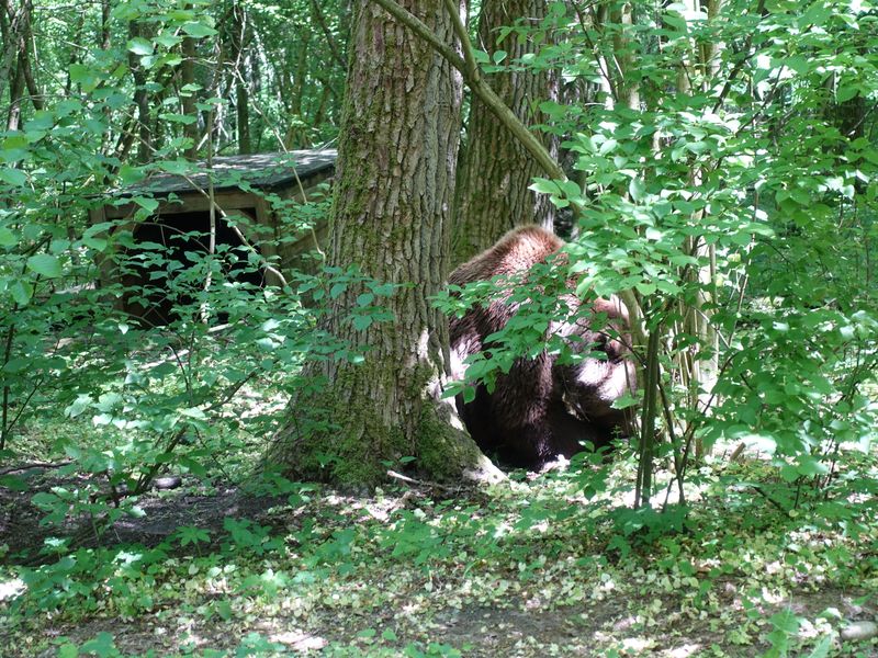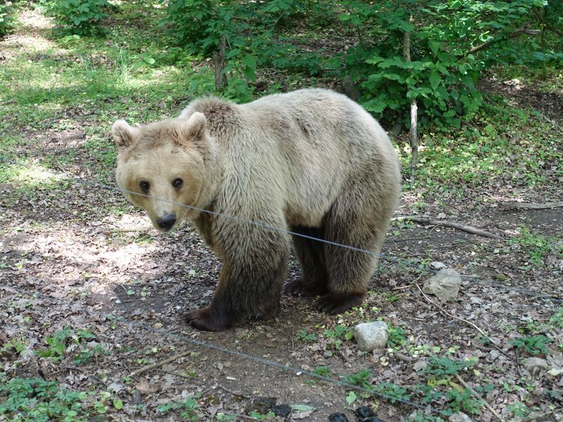 Von der letzten Bärin weiß ich sogar den Namen. Sie heißt Luna. Die Bären sind hinter Zäunen mit Elektrodraht, damit sie nicht frei durch den Wald spazieren. Das scheint sie aber nicht zu stören.