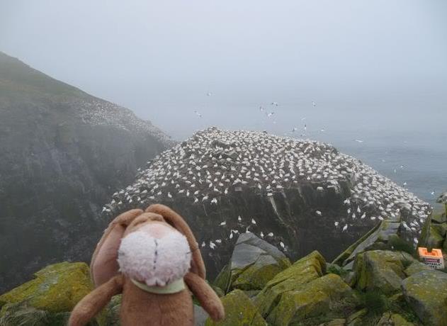We came nearer to the biggest rock. Most of the Northern gannets, for example, make their nests on „Bird Rock“—a 100-metre-tall stack of sandstone that is separated from the viewing area by a chasm only a few metres wide.