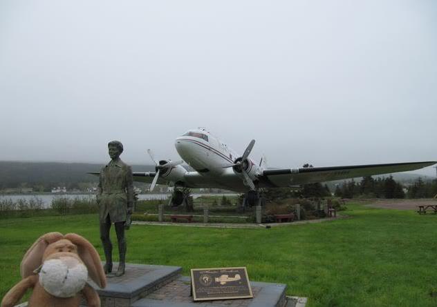 Amelia Earhart took flight from Harbour Grace on May 20, 1932, to become the first woman to fly solo across the Atlantic. The plane behind her monument is the „Spirit of Harbour Grace“.