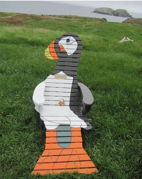 Of course we talked a lot about our different lives! In the evening our traveling group sat together in a big armchair. We met a new friend from Newfoundland. He is the funny puffin between us.