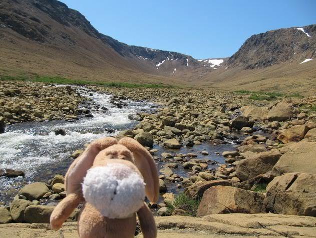 Then we reached the end of the trail and saw this great valley with a nice river. Can you see that there is still snow on the top of the mountains?