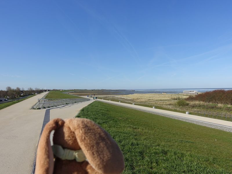 Vom Deich konnte ich bis zum Meer schauen, das war allerdings – typisch für die Nordsee- mal wieder nicht da.