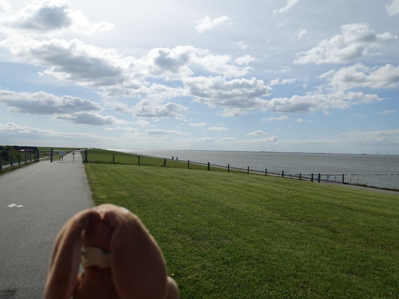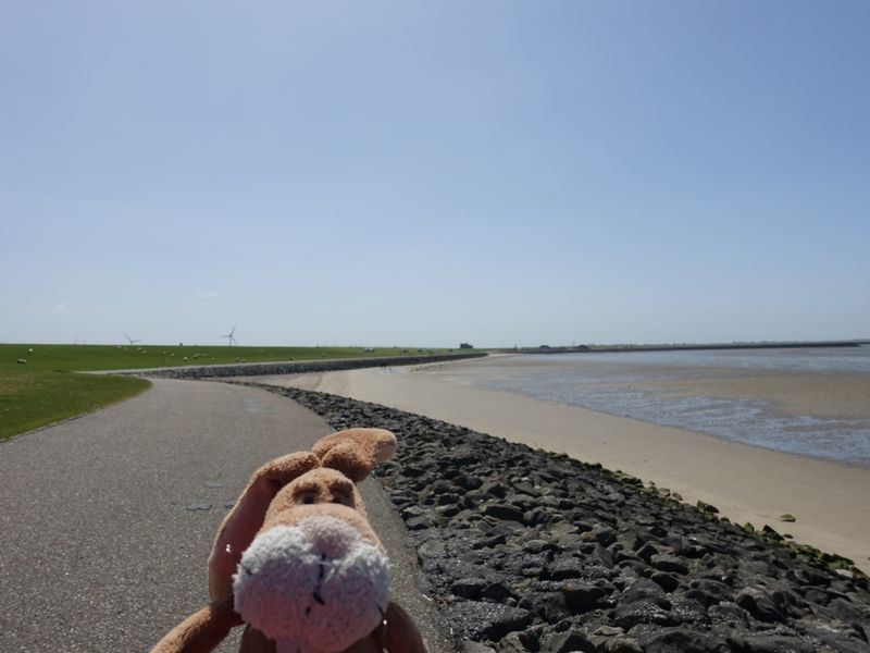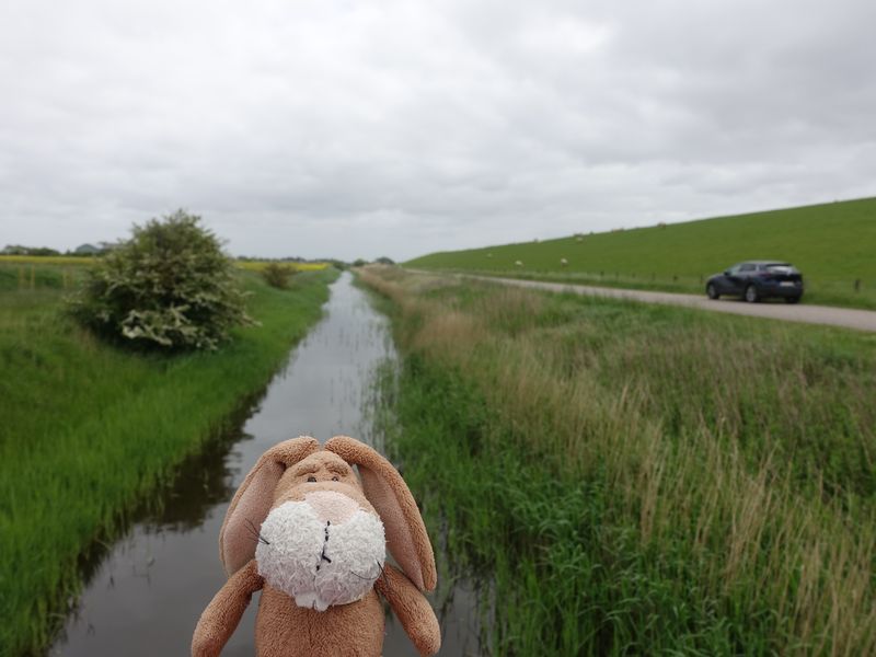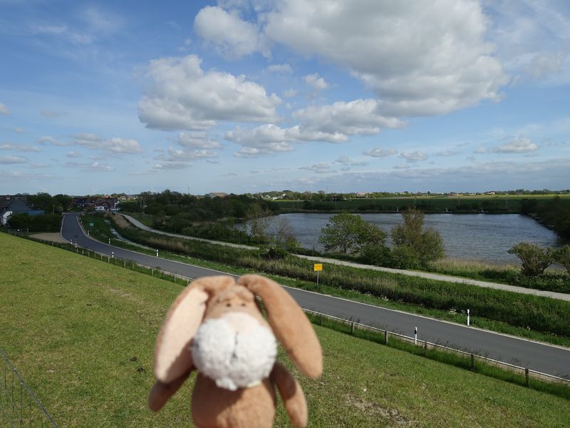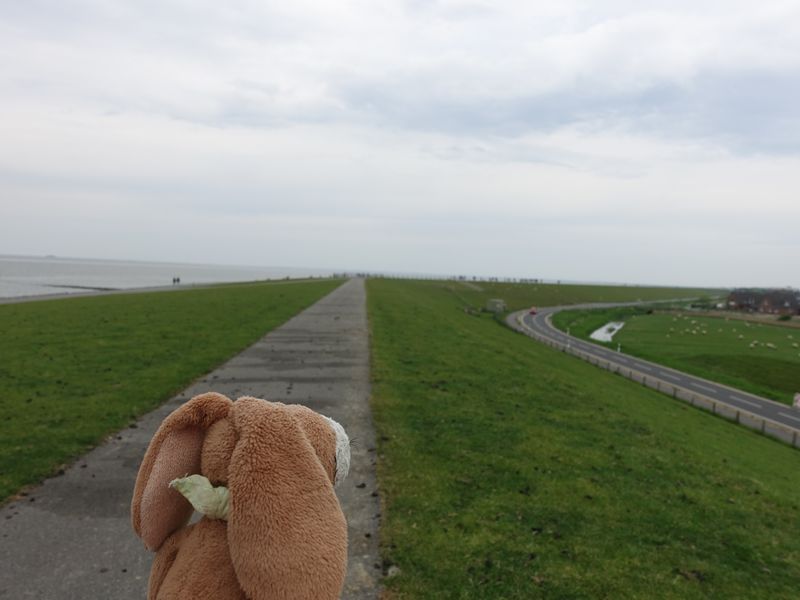 Endlich mal wieder ein Deich, mal schauen, ob es Schafe gibt.