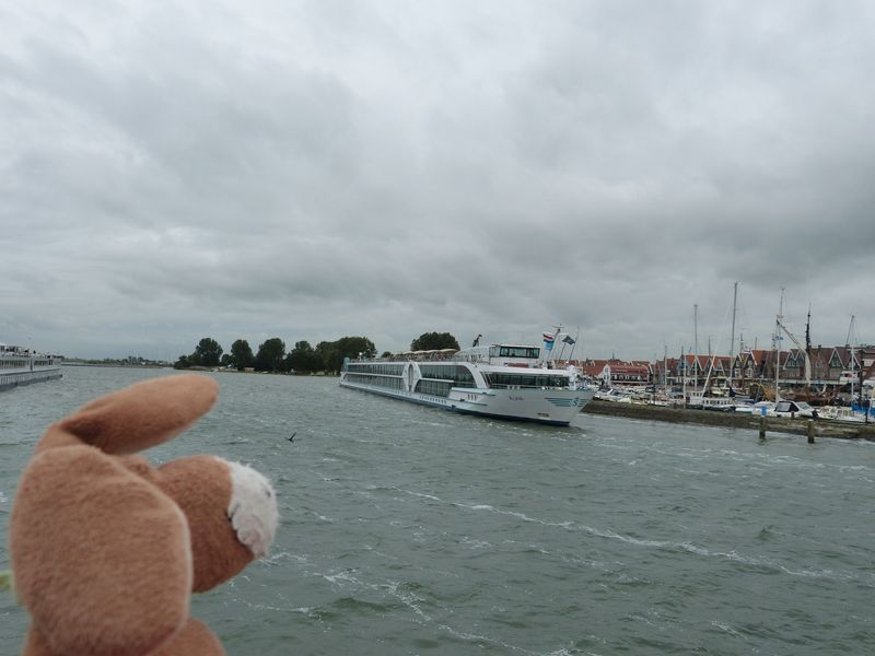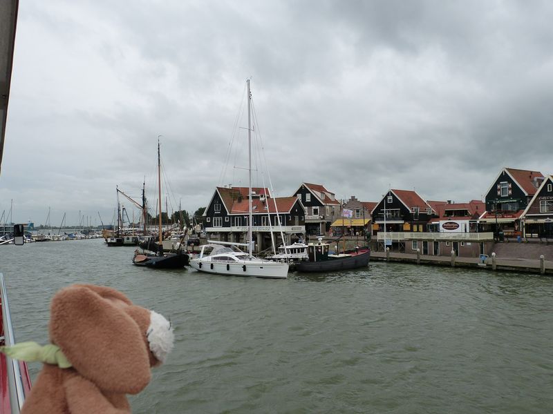Wir sind über Nacht zu einer neuen Stadt gefahren – sie heißt Volendam – und es gibt hier viele Schiffe.