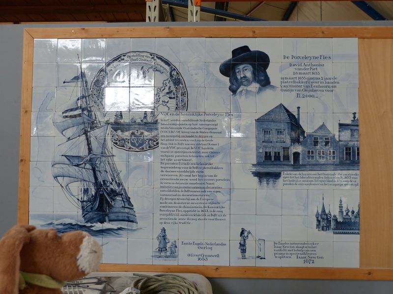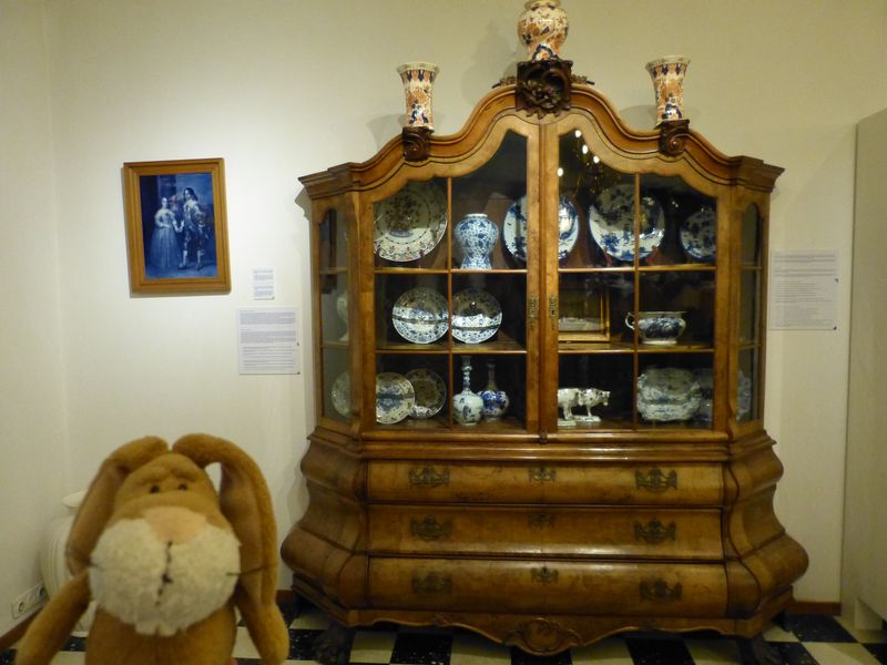 Dann sind wir weiter nach Delft gefahren. Delft ist für seine Keramiken bekannt – und wir haben dort eine Fabrik dafür besucht. In dem Schrank konnte man viel Geschirr sehen.