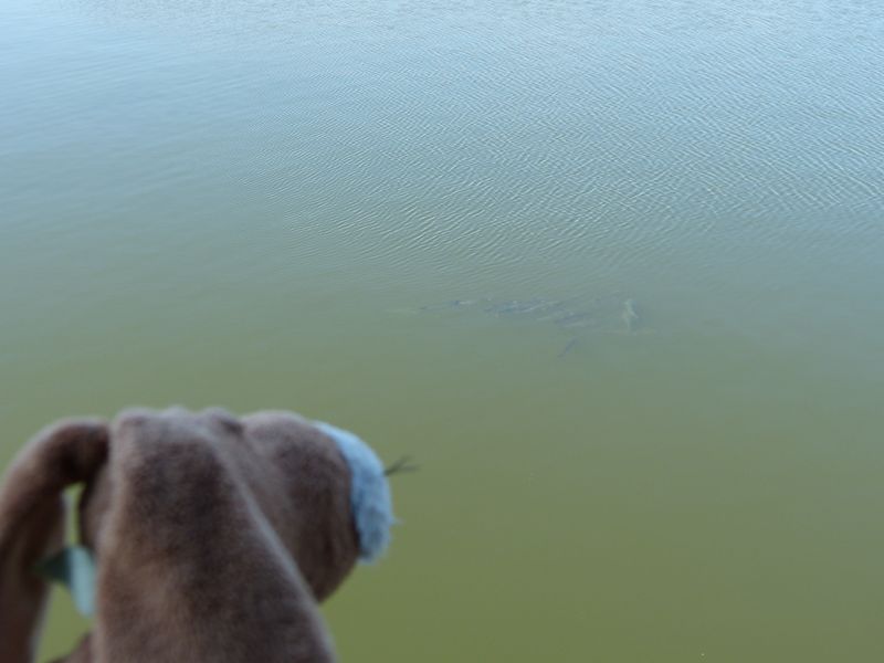 Als ich heute aus der Kabine schaute, haben mich Fische freundlich begrüßt.