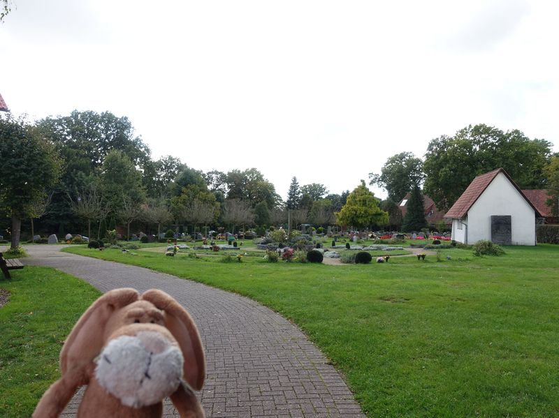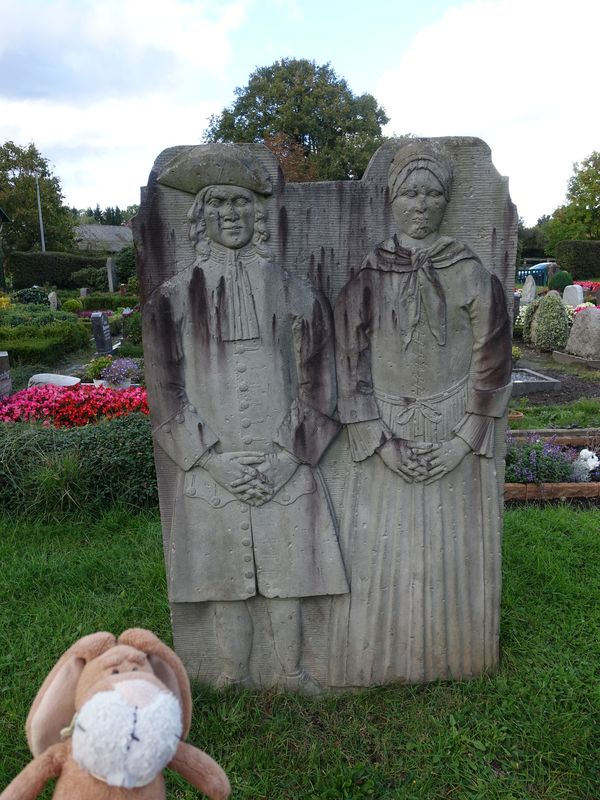 Und dann auch den Grabstein. Der Spaziergang hierher war sehr schön. Gut, daß der Weg weiter war als gedacht.