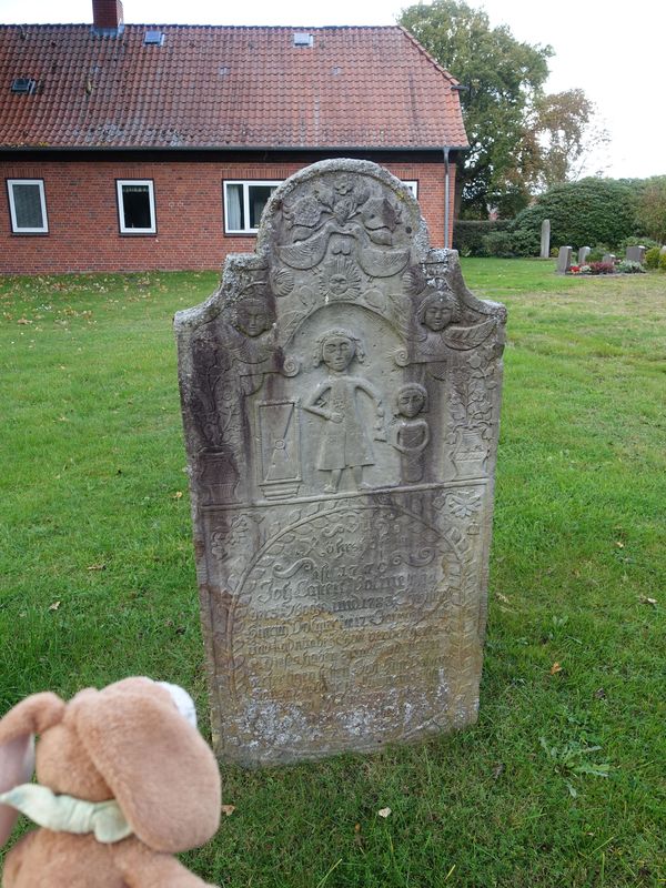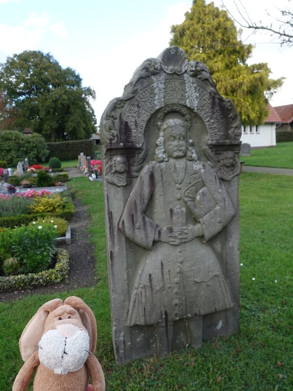Und dann auch den Grabstein. Der Spaziergang hierher war sehr schön. Gut, daß der Weg weiter war als gedacht.