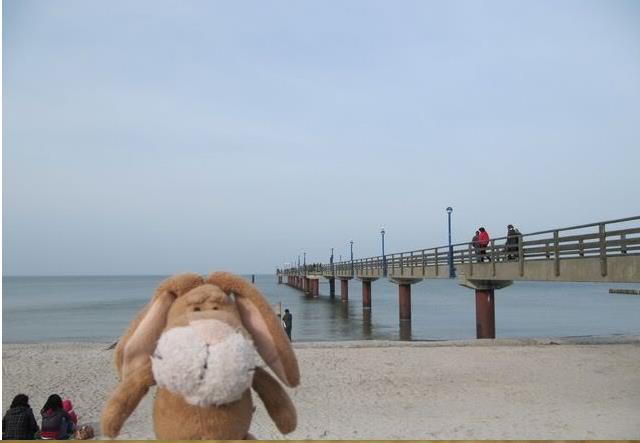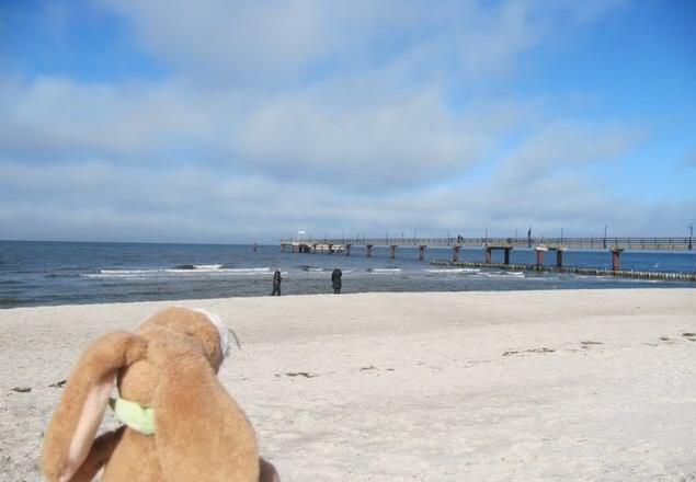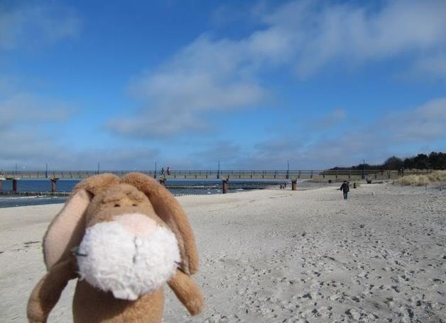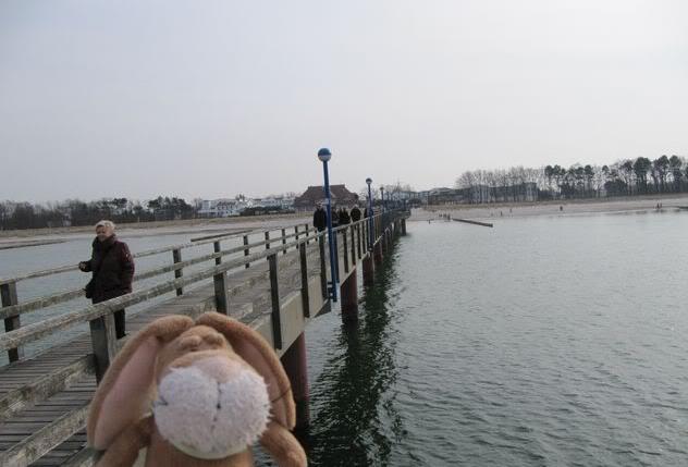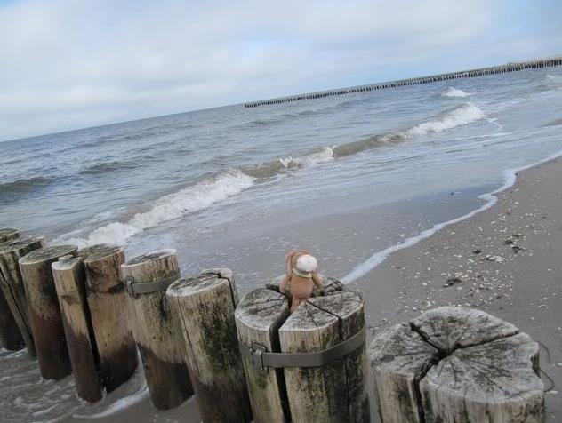 Hi from Zingst, today we drove some hours with the car – then we arrived at the Seaside. We have a wonderful holiday house – I will show it later this week, I think. But the weather was so nice – and we made a first walk through the village called Zingst. Here you can see me on the Pier.