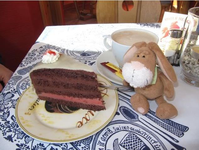 After the walk we stopped in the village and had a nice cup of coffee and a big chocolate tart.
